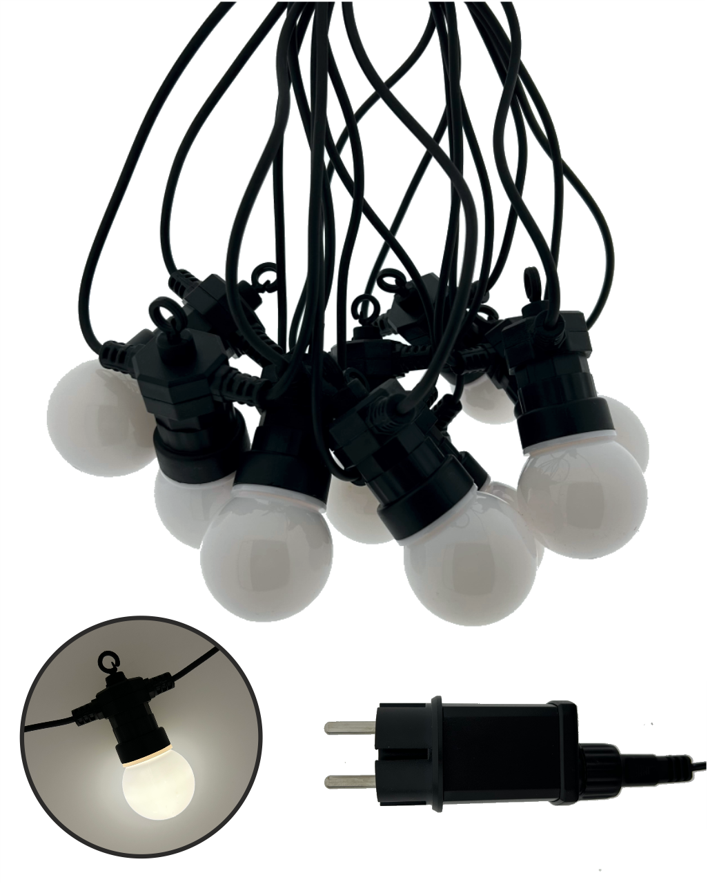 Teremtsen kellemes hangulatot kertjében, teraszán vagy erkélyén a TR-611JS dekoratív LED világítással. Ez a fényfüzér 10 stílusos izzót tartalmaz, amelyek mindegyike 5 meleg fehér LED-et (2700K) tartalmaz – összesen 50 LED 8 méter teljes hosszban. A robusztus műanyag kialakítás IP44-es védelemmel ellenáll az időjárási viszonyoknak, így ideális kültéri használatra. A fényfüzér hálózatról működik (220–240V), és biztonságos kimenete 24V DC / 3,6W. A 3,5 méteres tápkábelnek köszönhetően a telepítés egyszerű és rugalmas.