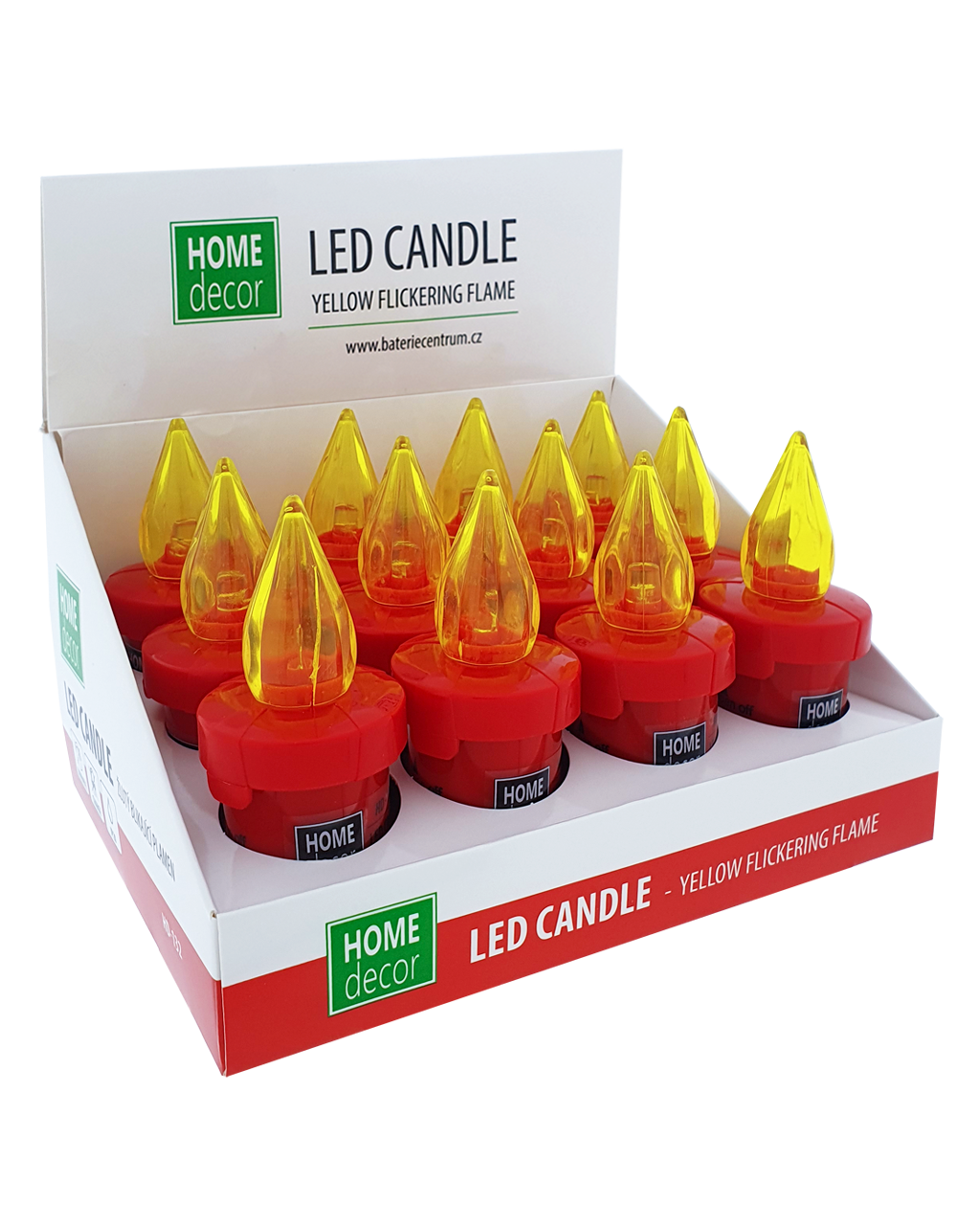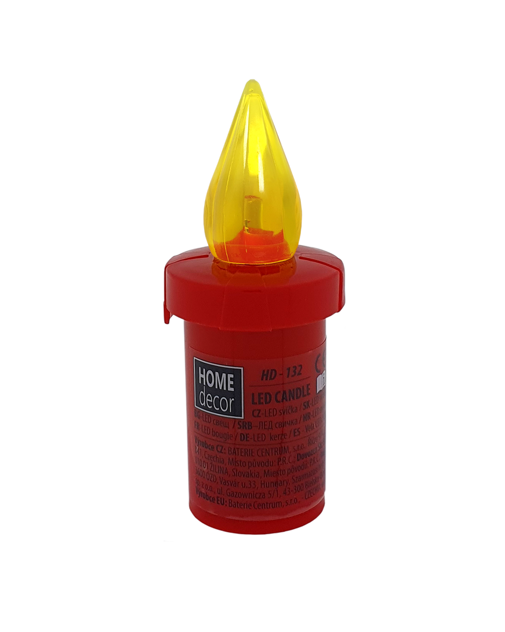 Piros LED gyertya HD-132 HOME DECOR sárga, pislákoló lánggal. Megfelelő alternatívája a klasszikus gyertyáknak beltéri terekbe. Könnyen és biztonságosan használható, tűzveszély nélkül. A fedél elforgatásával kapcsolható be. 2 db AA-R6 1,5 V-os elemmel működik (tartozék).
