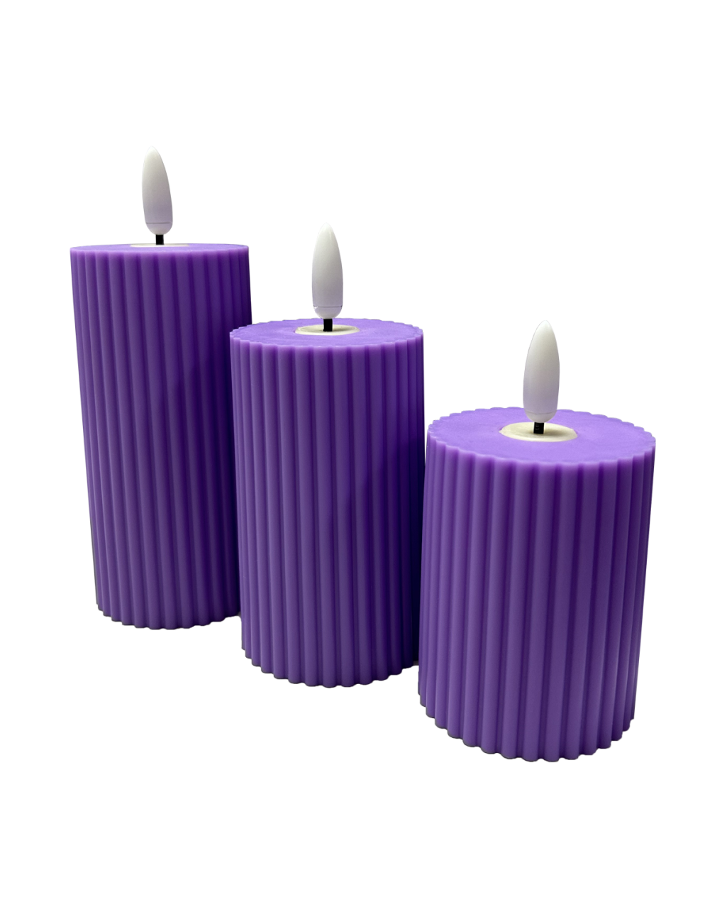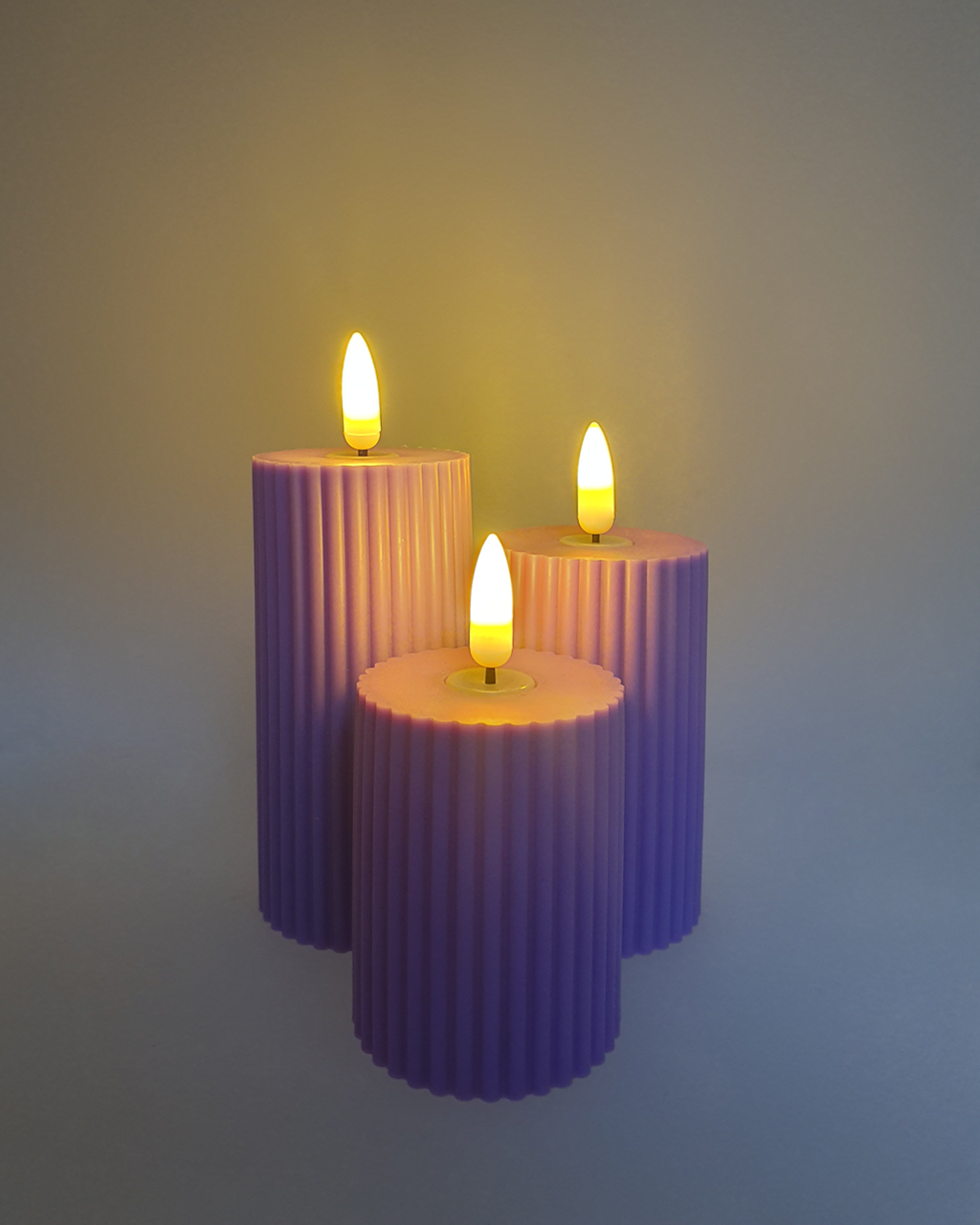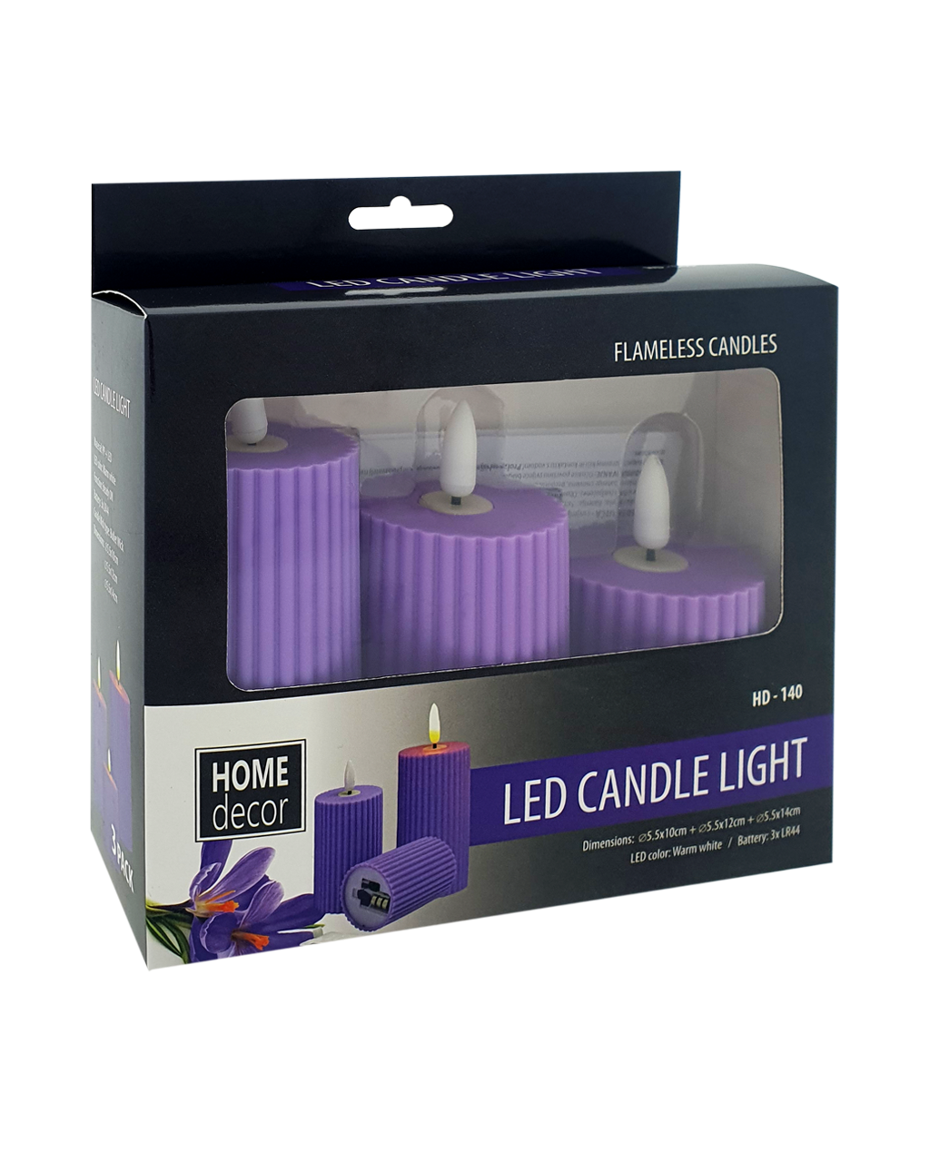 HD-140 LED gyertya – lila LAKKOLT DÍSZ 3 db-os szett