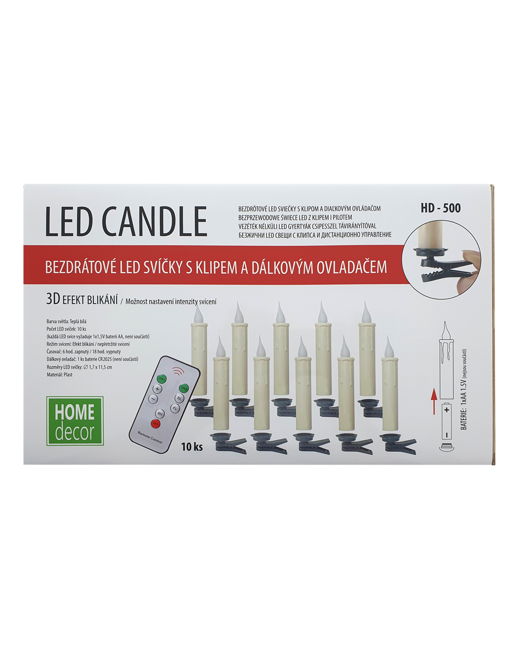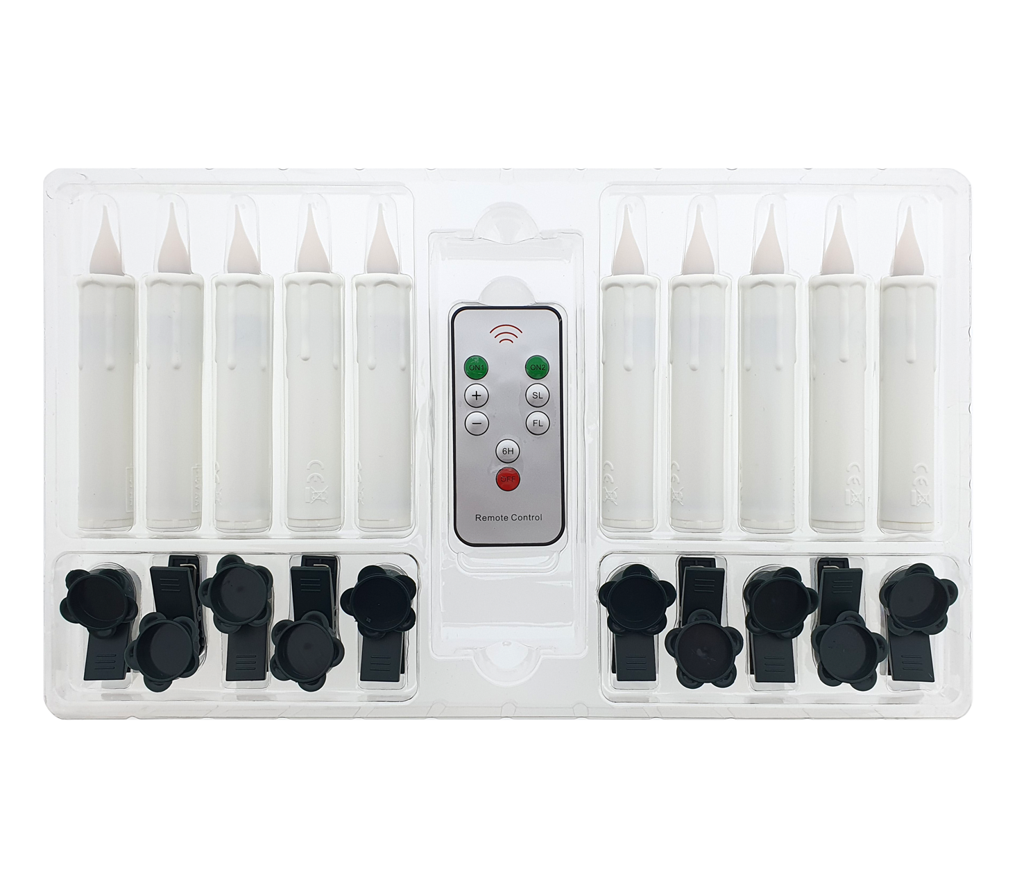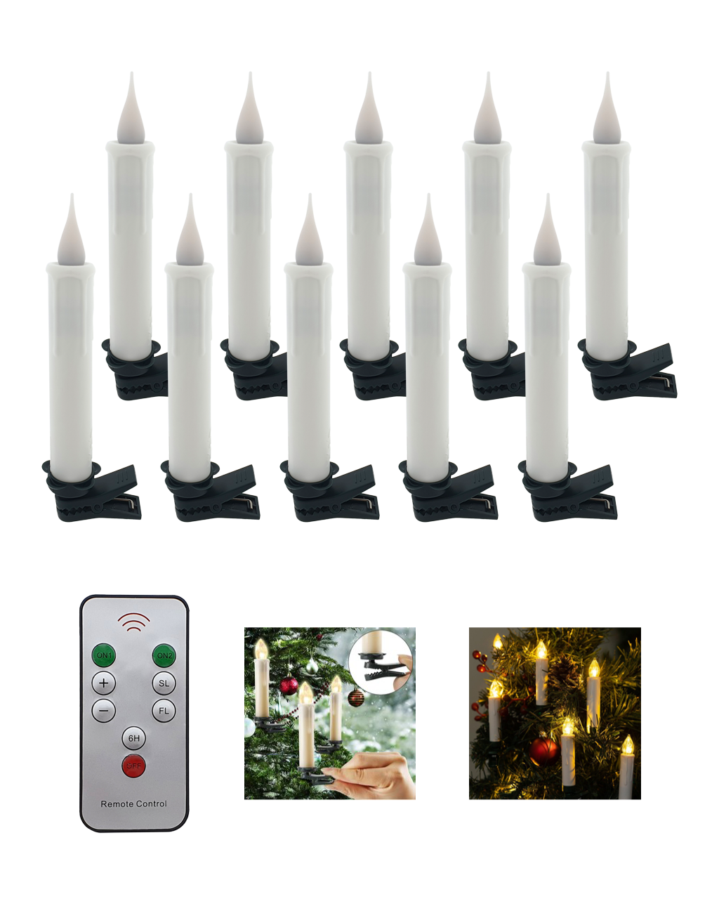 HD-500Lakberendezési karácsonyi LED gyertyák 10 db csipesszel és távirányítóval – vezeték nélküli AA elemekkel.