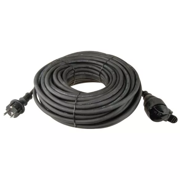 Földelt lengő hosszabbító csapfedéllel, 10m, gumis, H05RR-F 3×1,5, IP44, fekete, 16 A, 250 V~, 3500 W
