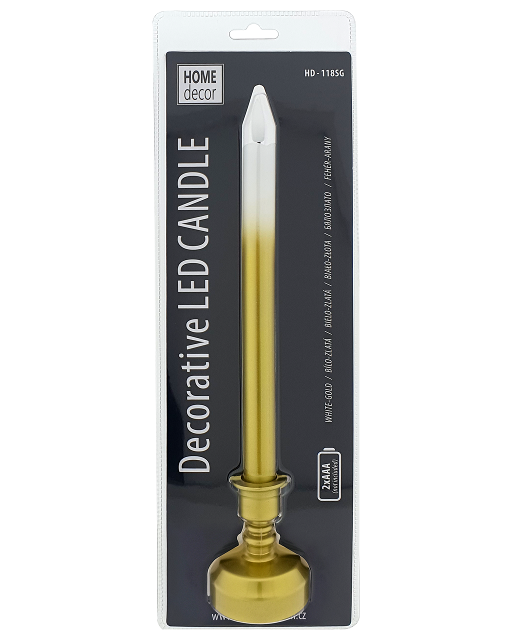 Dekoratív LED gyertyaHOME DECOR HD-118SG talpon pihentető és nyugtató légkört teremt. Megfelelő alternatívája a klasszikus gyertyáknak olyan háztartásokban, ahol gyermekek, idősek, háziállatok vannak. Könnyen és biztonságos használható, tűzveszély nélkül. 2 AAA elemmel működik (nem tartozék). Kiváló minőségű alkáli elemek használatát javasoljuk. Helyezze be az elemeket a gyertyába úgy, hogy a + (plusz) pólus a láng felé nézzen. BE/KI A gyertyát az óramutató járásával megegyező irányba csavarva a talpba a gyertya bekapcsol, az ellenkező irányba csavarva pedig kikapcsol. Ideális lakberendezési tárgyként, partikra, esküvőkre, karácsonyra, ünnepségekre stb.