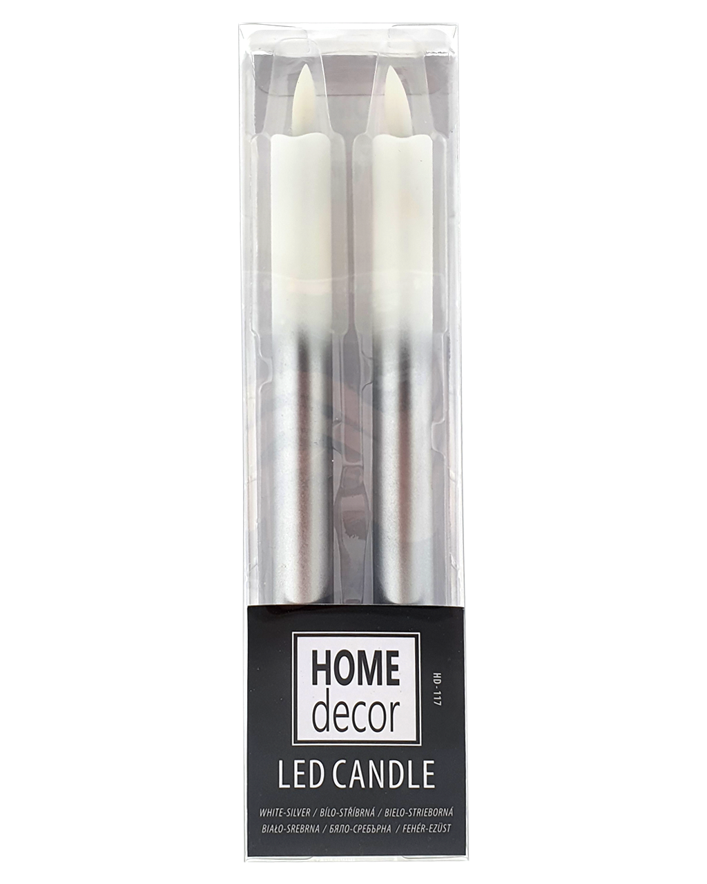 HD-117 Hosszú LED gyertyák – fehér-ezüst, 2 db HOME DECOR