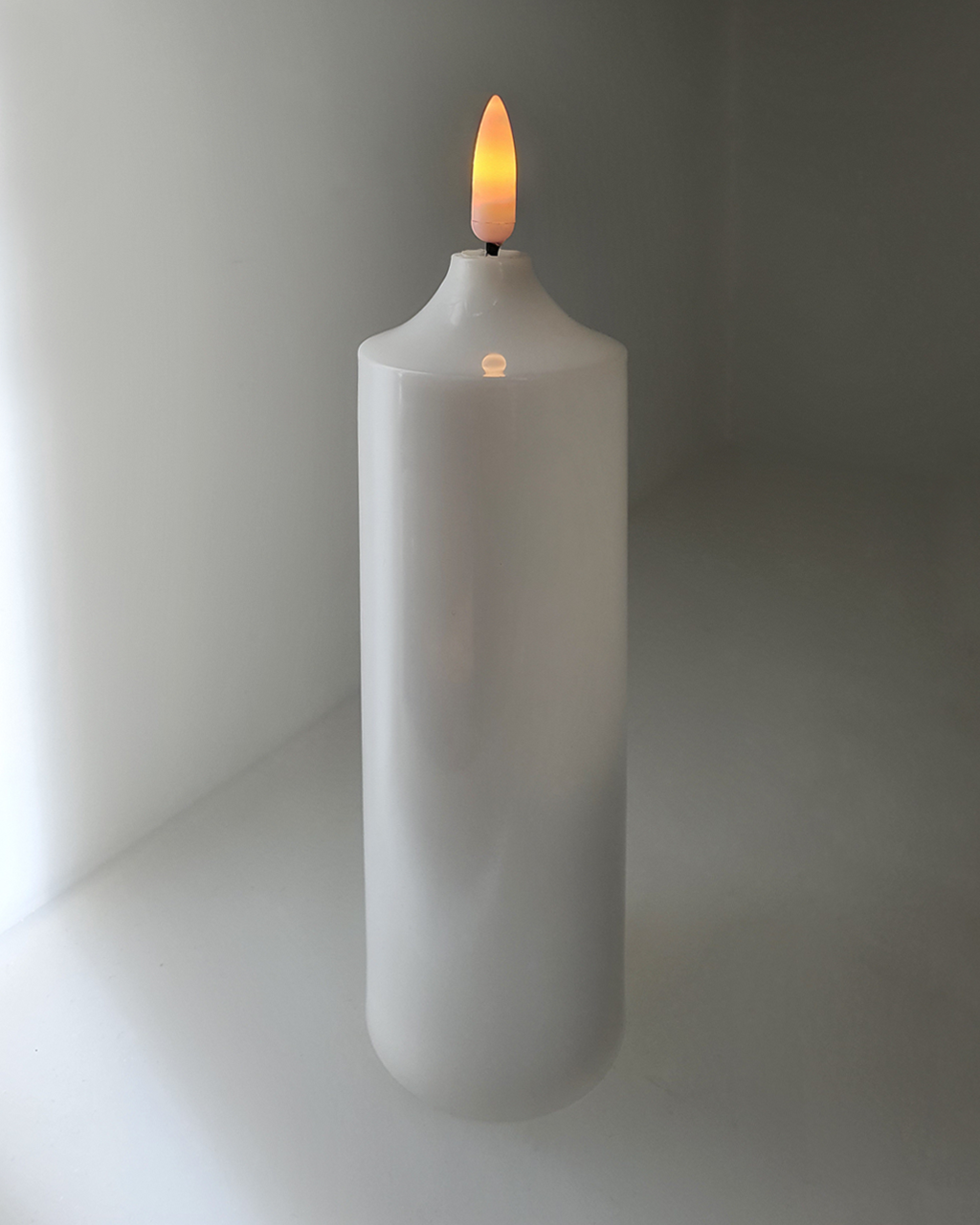 Égő gyertya hangulatát teremti. Folyamatosan világít.