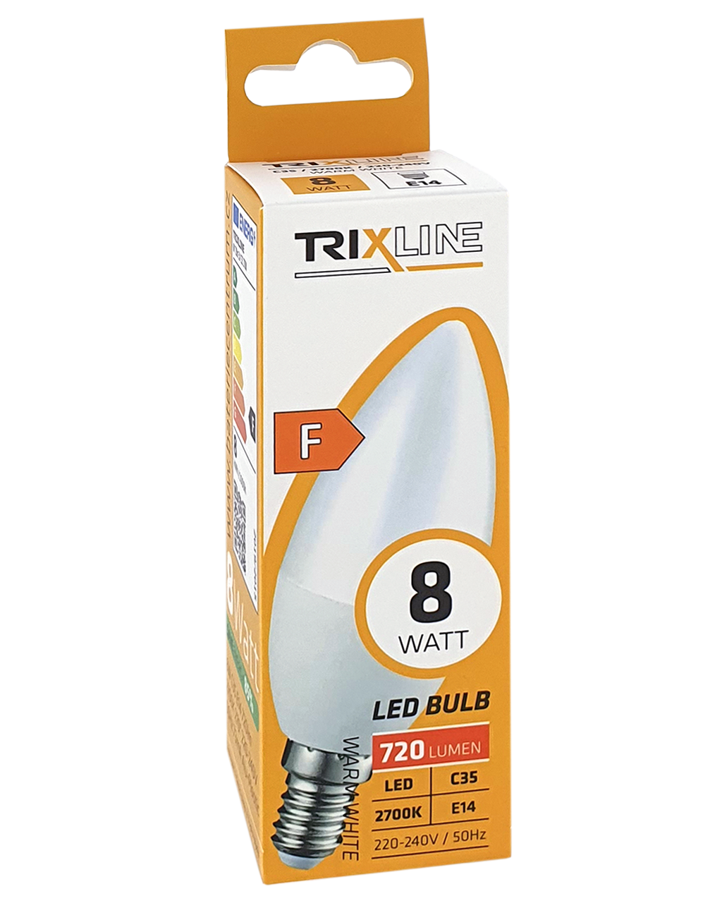 TRIXLINE LED energiatakarékos izzó (85% energiamegtakarítás) E14 foglalattal, környezetbarát, nem tartalmaz higanyt és ólmot, és jól működik még rendkívül alacsony és magas hőmérsékleten is, amikor az izzólámpák hajlamosak problémákat okozni. Éltartama akár 30000 órát is elérhet. 8 W teljesítményének köszönhetően kiválóan helyettesíti a klasszikus 70 W-os izzót. A LED izzó bekapcsolás után azonnal, késleltetés nélkül világít, és kellemes meleg fehér 2700K fényt bocsát ki.