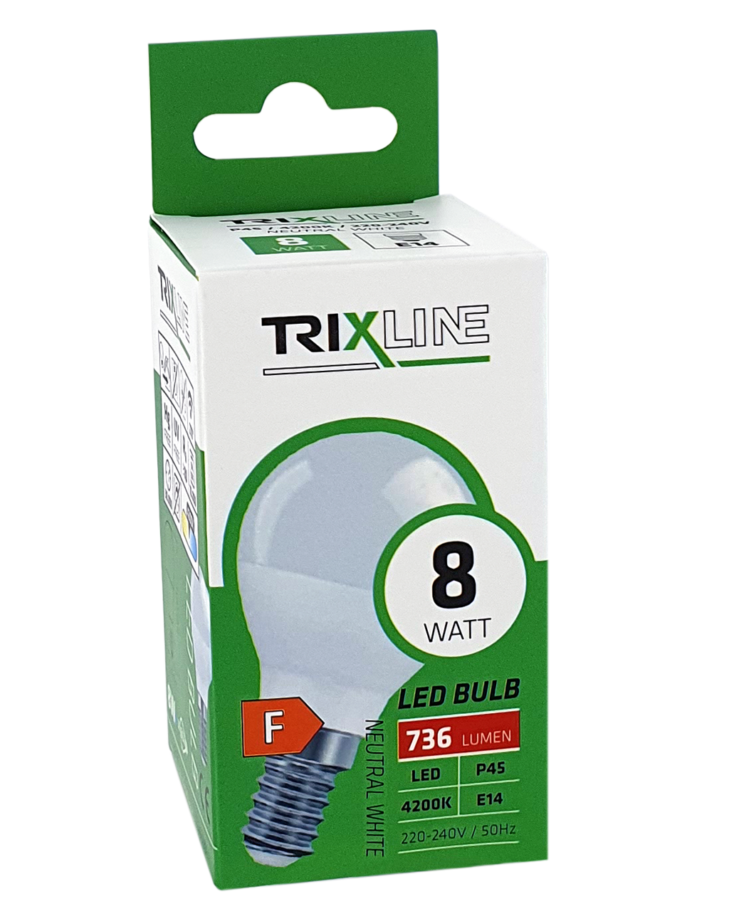 TRIXLINE LED energiatakarékos izzó (85% energiamegtakarítás) E14 foglalattal, környezetbarát, nem tartalmaz higanyt és ólmot, és jól működik még rendkívül alacsony és magas hőmérsékleten is, amikor az izzólámpák hajlamosak problémákat okozni. Éltartama akár 30000 órát is elérhet. 8 W teljesítményének köszönhetően kiválóan helyettesíti a klasszikus 60 W-os izzót. A LED izzó bekapcsolás után azonnal, késleltetés nélkül világít, és kellemes semleges fehér fényt bocsát ki 4200K.