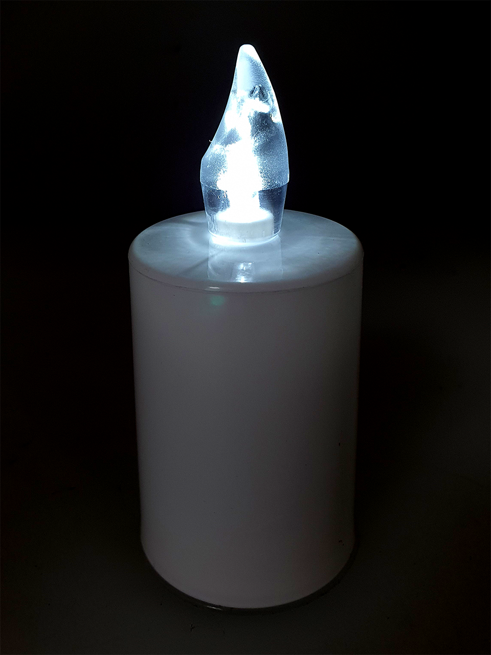 Fehér gyertya fehér lánggal, égő gyertya utánzata