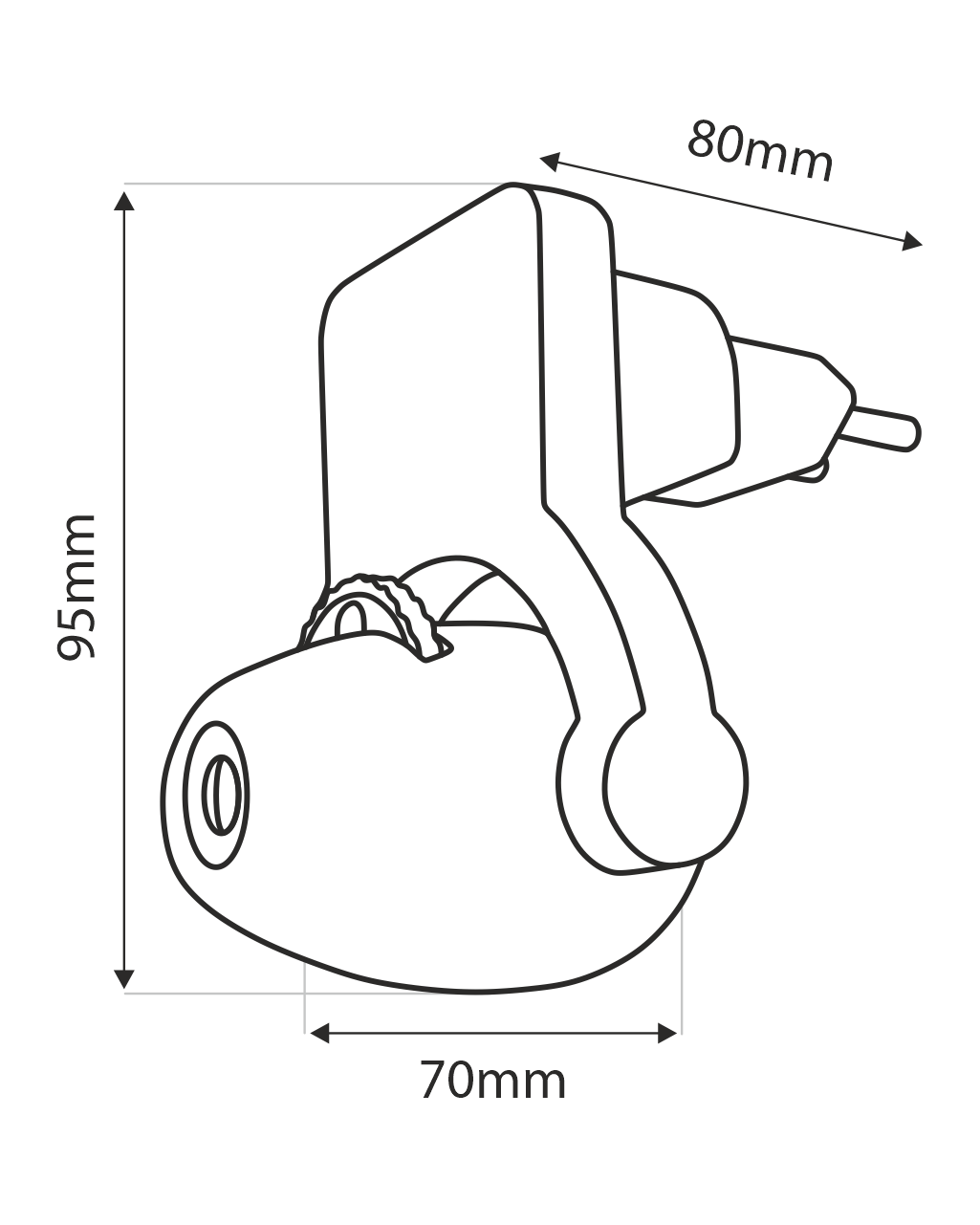 Méretek: szélesség 70 x magasság 95 x magasság 80 mm