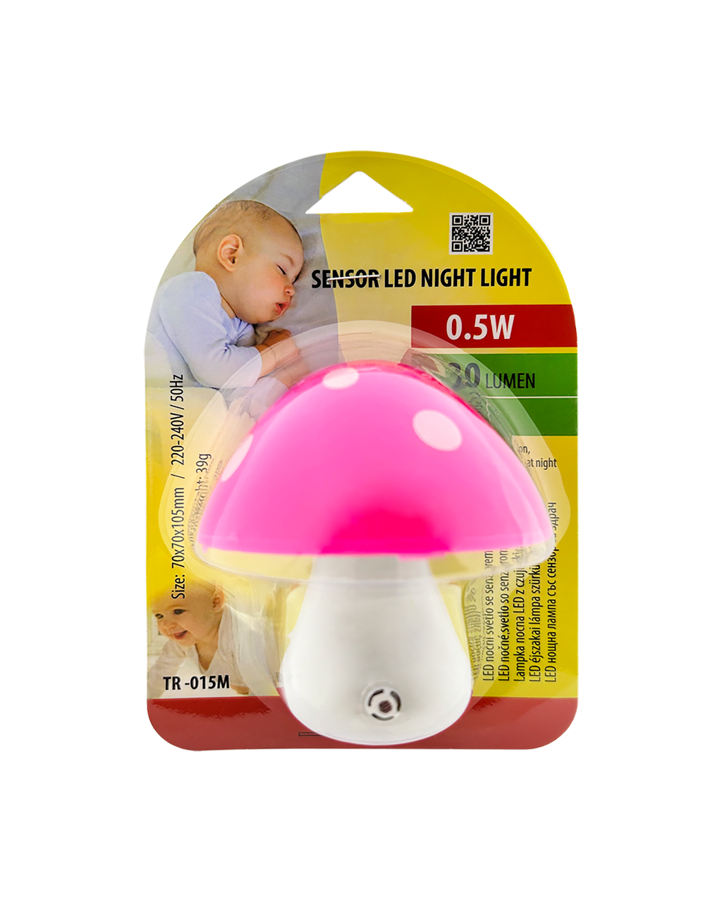 Dobd világítsd meg az éjszakáidat ezzel az aranyos, rózsaszín gomba alakú éjszakai fénnyel! **mindössze 0,5 W energiafogyasztásával** energiatakarékos. Az alkonyatérzékelőnek köszönhetően automatikusan bekapcsol, amint besötétedik, lágy, nyugtató fényt biztosítva. Ideális a gyerekek számára, hogy kényelmesen és biztonságban érezzék magukat éjszaka. Teremtsen varázslatos hangulatot otthonában!