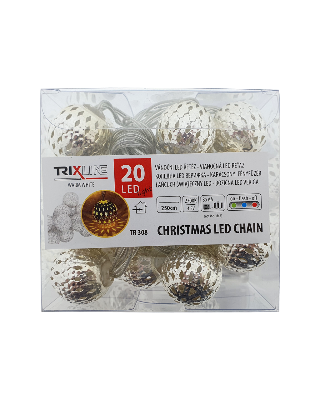 A TR 308 Trixline marokkói gömbökből álló karácsonyi LED-es lánc főbb jellemzői
