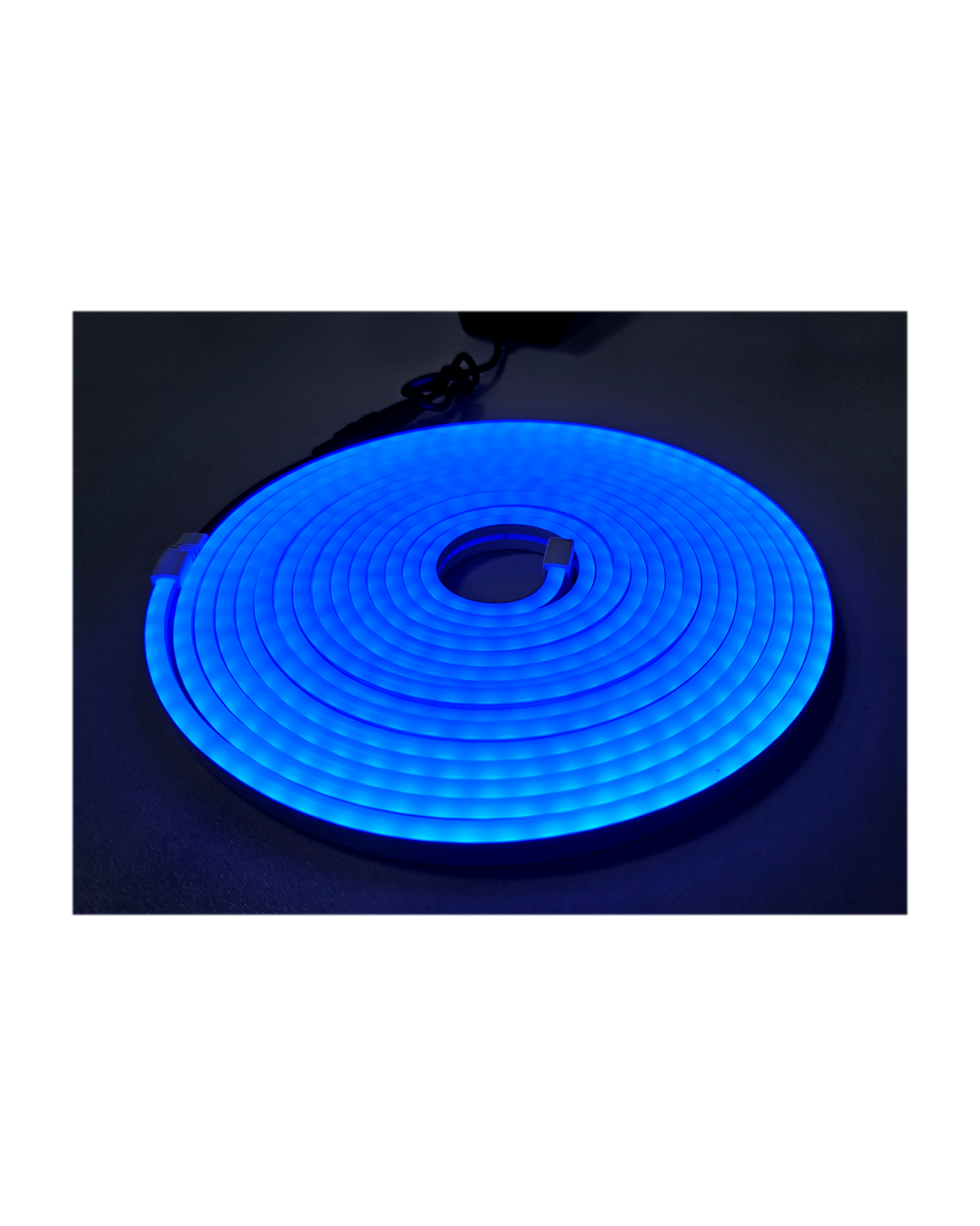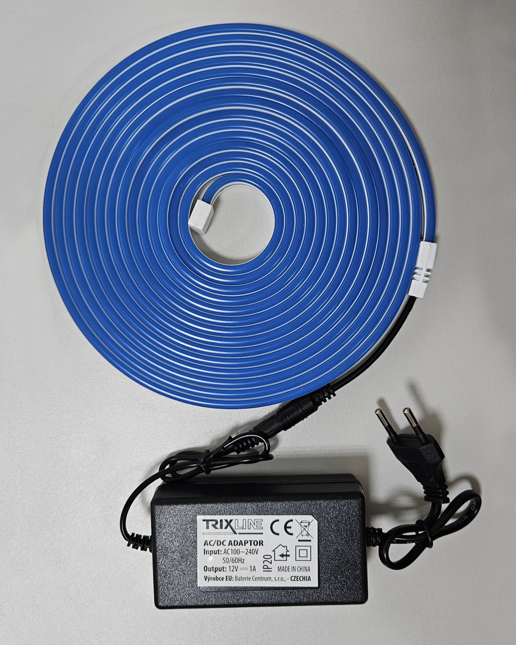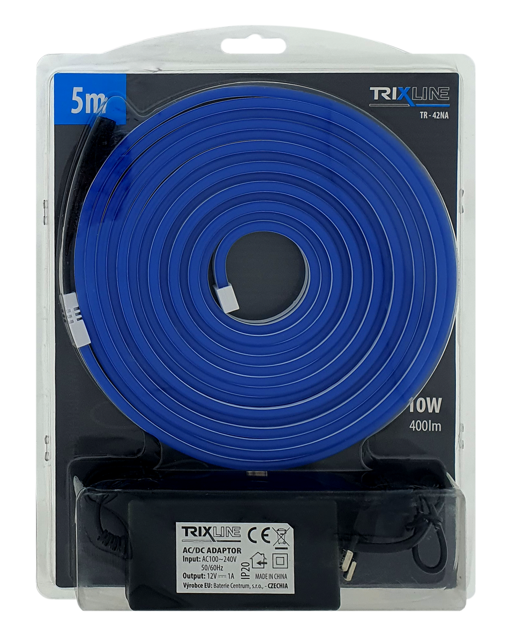 Neonkék LED szalag TR-42NA Trixline hálózati csatlakoztatáshoz adapterrel. Dizájnelem, amely modern hangulatot kölcsönöz a térnek. Ideális ünnepi alkalmak, például partik, születésnapi partik, bálok, karácsony, esküvők, Halloween, szilveszter dekorációinak létrehozásához. Gyerekszobák, nappalik, éttermek, bárok, pubok, klubok, játéktermek stb. belső dekorációja. A szalag könnyen hajlítható bármilyen formára, mintára, feliratra vagy reklámszövegre, és levágható a kívánt hosszúságra 2,5 cm-enként a fekete vezetékek között.