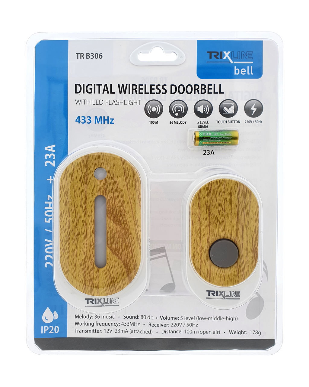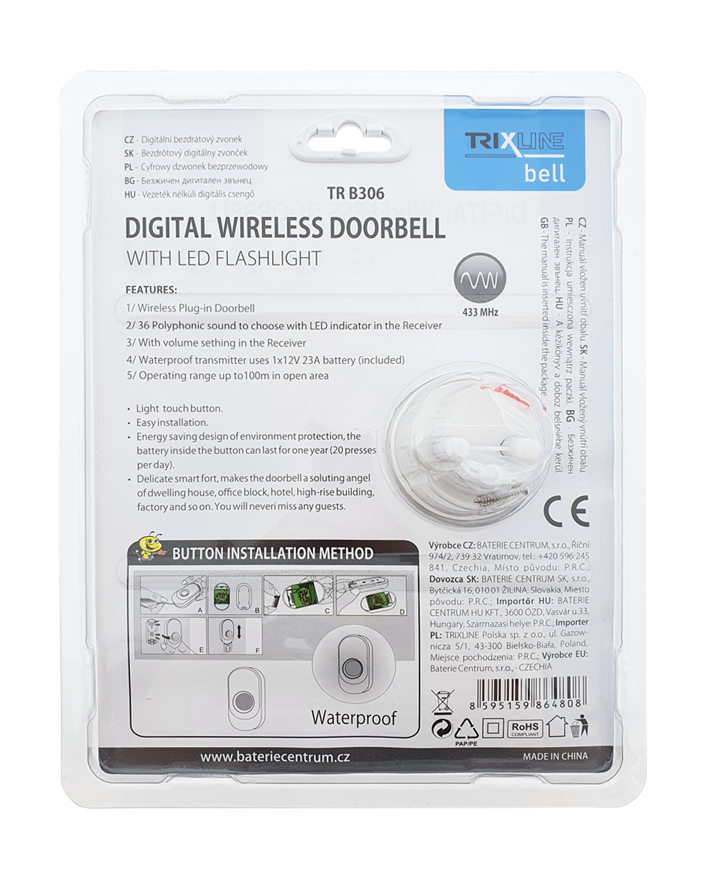 A Trixline BELL vezeték nélküli kapucsengő nagyszerű megoldás bárhol, ahol nem lehetséges a klasszikus vezetékes kapcsolat kiépítése. A fő előnyök közé tartozik a nagyon egyszerű telepítés, az elemes gombos működtetés.